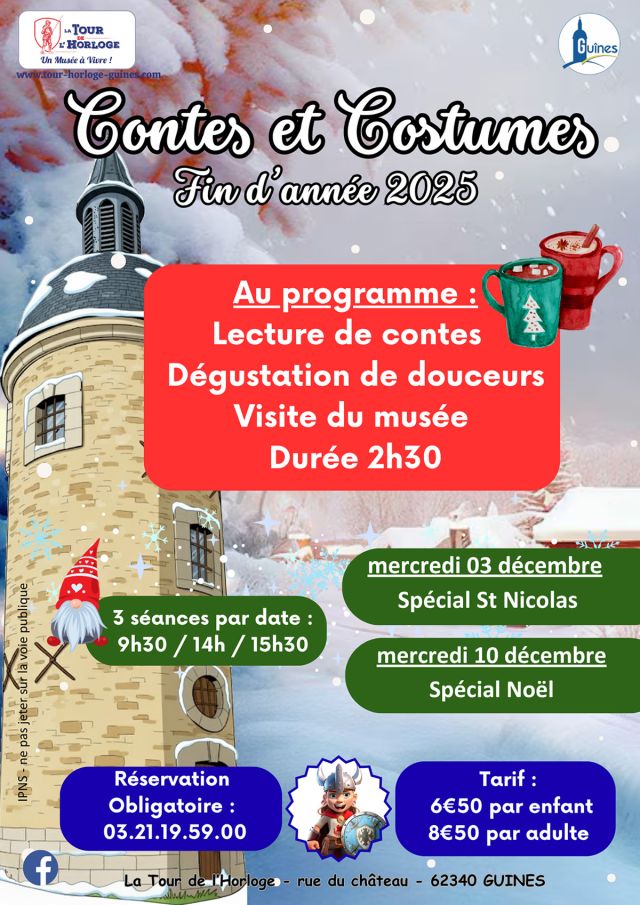 La magie des fêtes de fin d'année s'invite à la Tour de l'Horloge. Saint Nicolas et le Père Noël vous proposent une lecture de conte, agrémentée de douceurs sucrées. L'aventure continue avec la visite du musée : découvrez l'histoire en vous amusant !